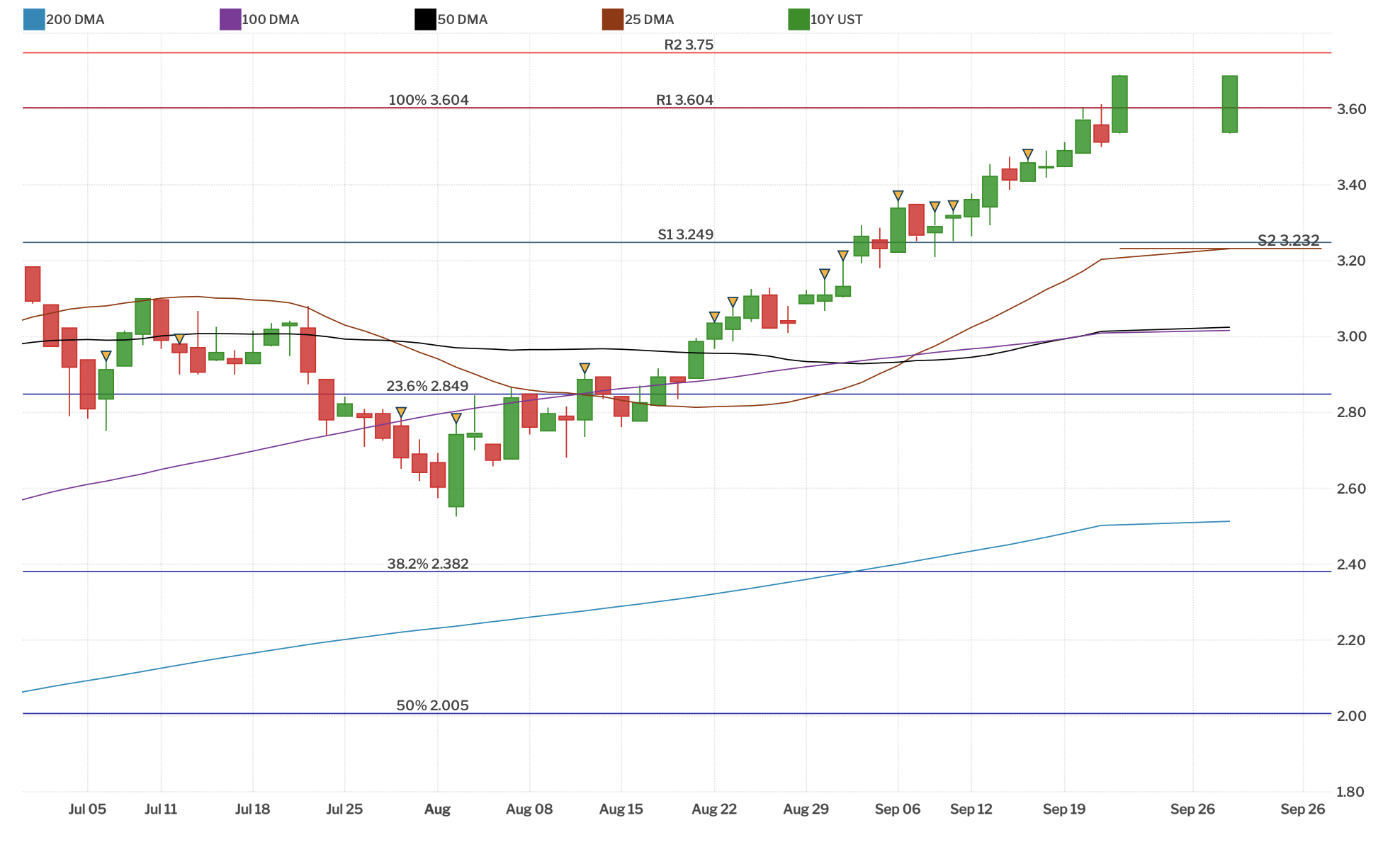 The market appears to be digesting the Fed's projections negatively, as it shows the Fed is losing control and does not have a good handle on inflation. The Fed now expects an additional 125bp of hikes this year, which may be 75bp in November and 50bp in December.
